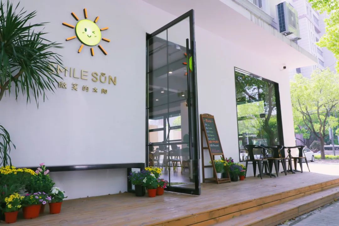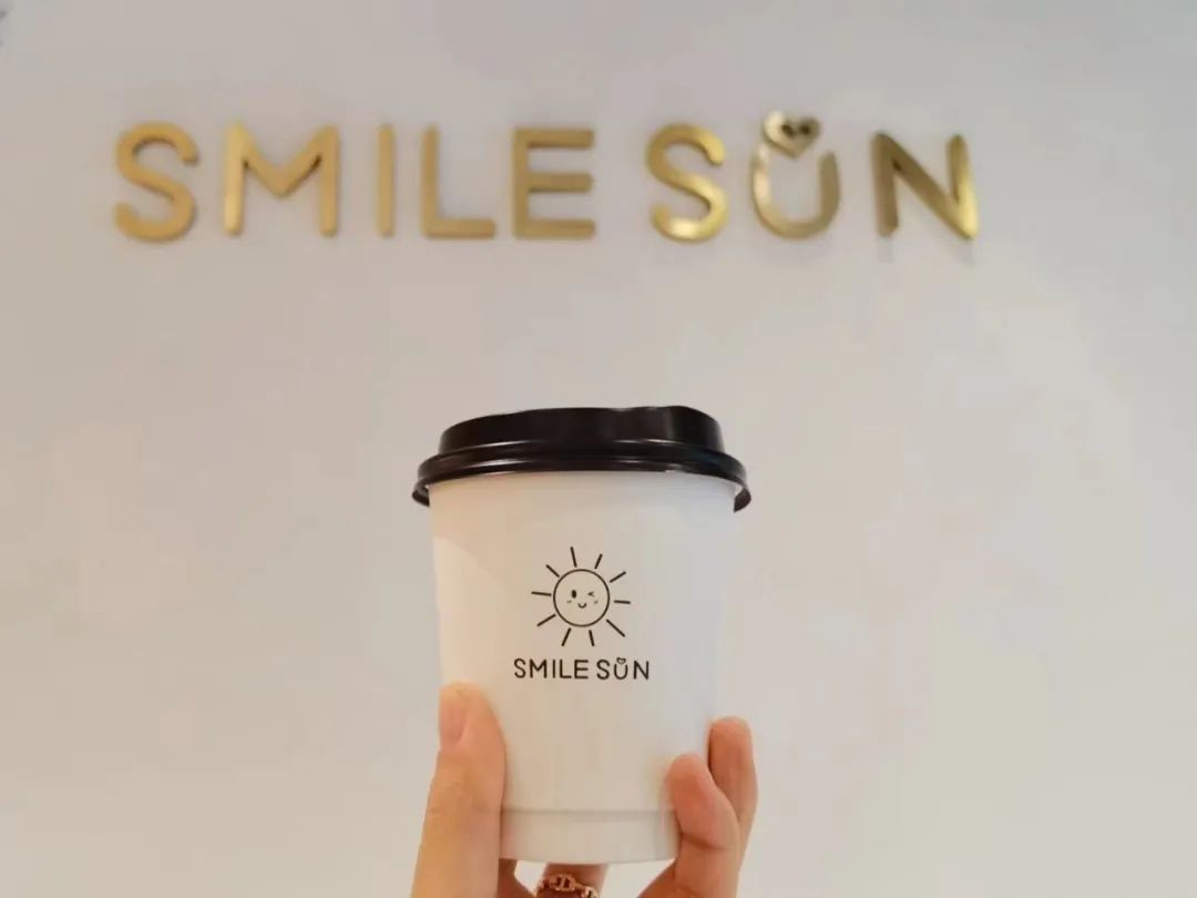 “Smile Sun Coffee”的白色外墙上,有一个太阳花标识,很可爱,旁边就是停车场,非常方便。