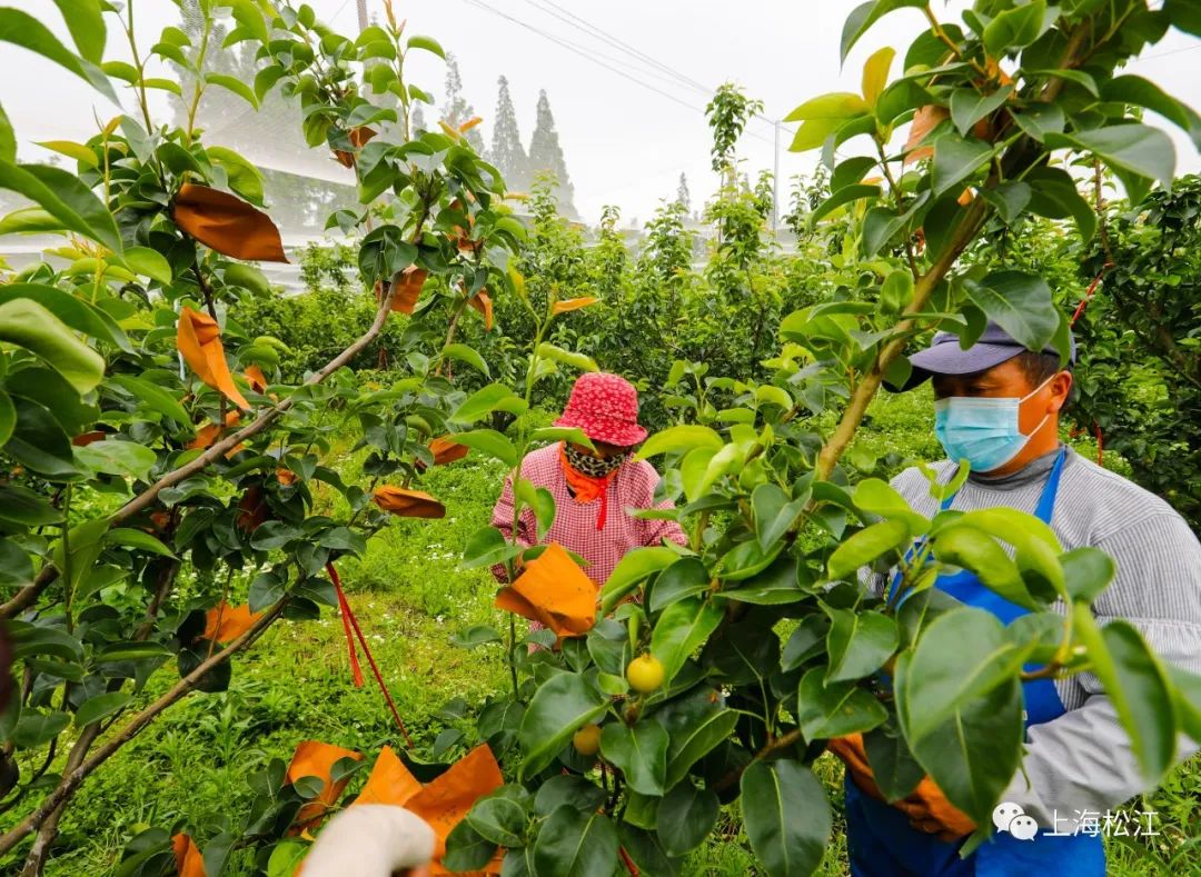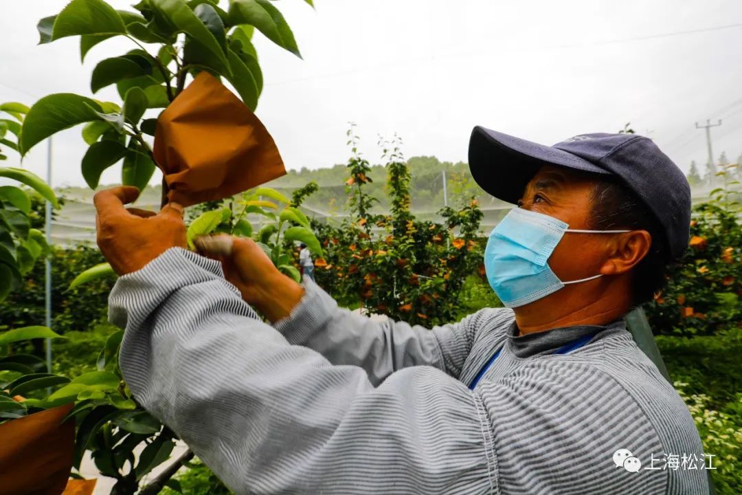 在园内,工作人员正为早生新水梨套袋。经过悉心呵护的“蜜梨宝宝”将在六月下旬迎来成熟,届时,甜如蜜的早生新水梨将挂满枝头,等待市民采摘品尝。