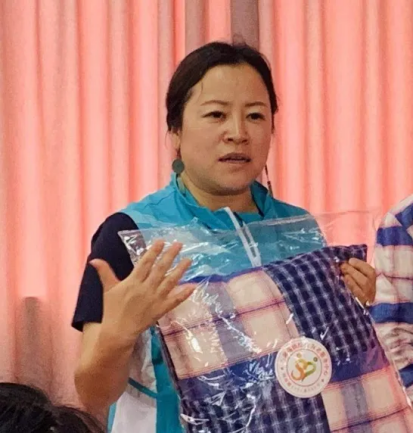 妈妈们穿针引线,手指灵动地穿梭于老布间,孩子依偎在身边。满满的爱,在一针一线间萦绕……
