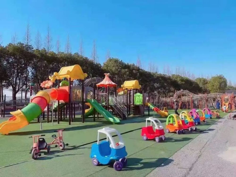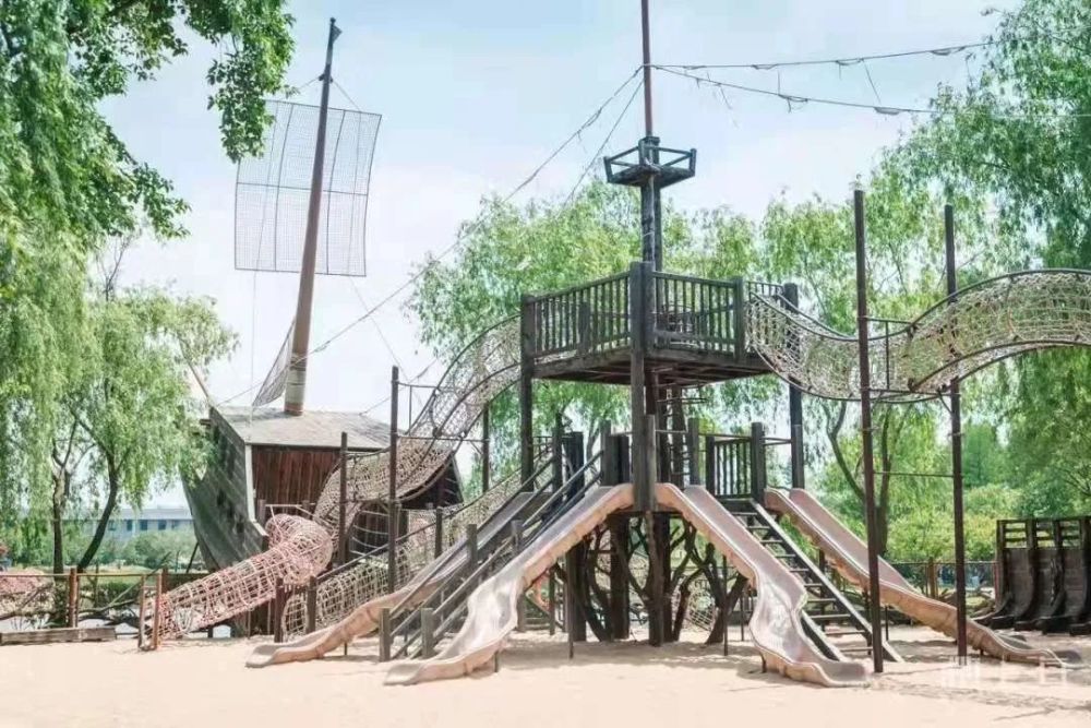 一座巨型游乐园足以“承包”孩子们的欢乐童年。儿童乐园里的各种设施齐全,在木桥上来一次赛跑、去小木屋里躲个猫猫、在秋千上放飞笑声……大自然里,任孩子开心奔跑。