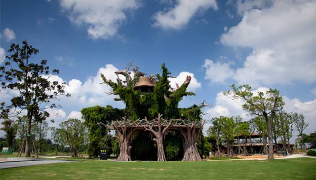 上海世茂精灵之城主题乐园四面环山、风景宜人,游客可徜徉于“天然氧吧”之中,坐拥深坑酒店奇观。