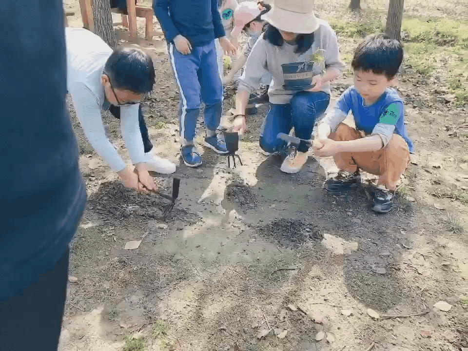 小朋友们换上“小农夫”定制服装;通过盲盒扭蛋机,获得“神秘种子”;农具讲解老师会给大家介绍各类农具和使用方法;翻地、挖坑、播种、埋土、浇水,让孩子们近距离地接触田地。
