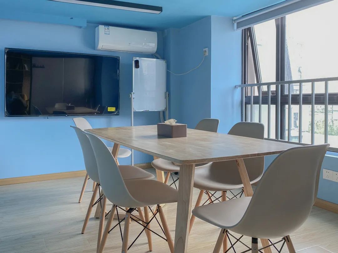 与之相邻的会议区则模拟了会议讨论的场景,配有移动电视机和白板,方便有“团队作战”需求的顾客选用。