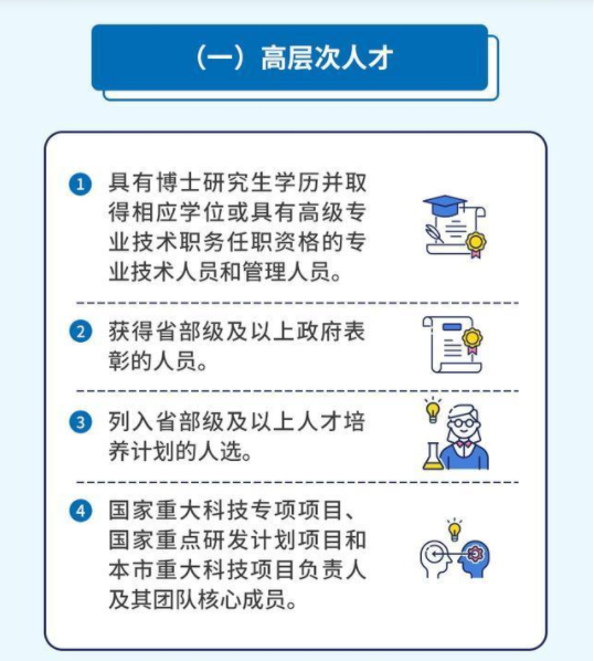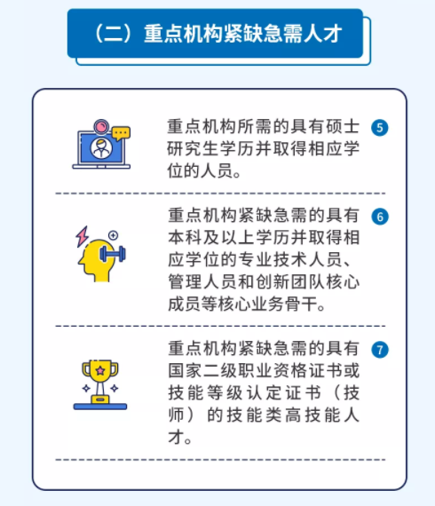 (一)高层次人才(二)重点机构紧缺急需人才(三)高技能人才