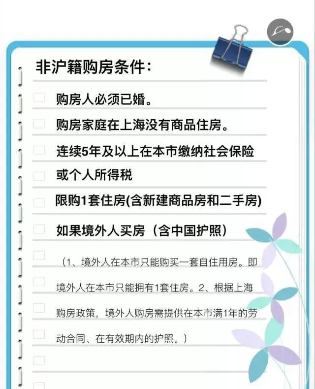 2、非沪籍家庭限购一套上海住宅,但夫妻双方必须至少有一人社保或个税,自购房之日前连续缴纳满5年及以上。