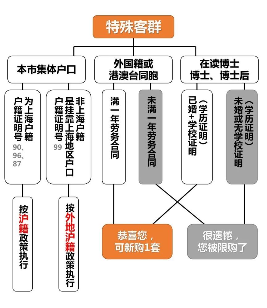 b、原籍非上海户籍,按外地户籍政策执行。单身不可购买、结婚可购买一套。