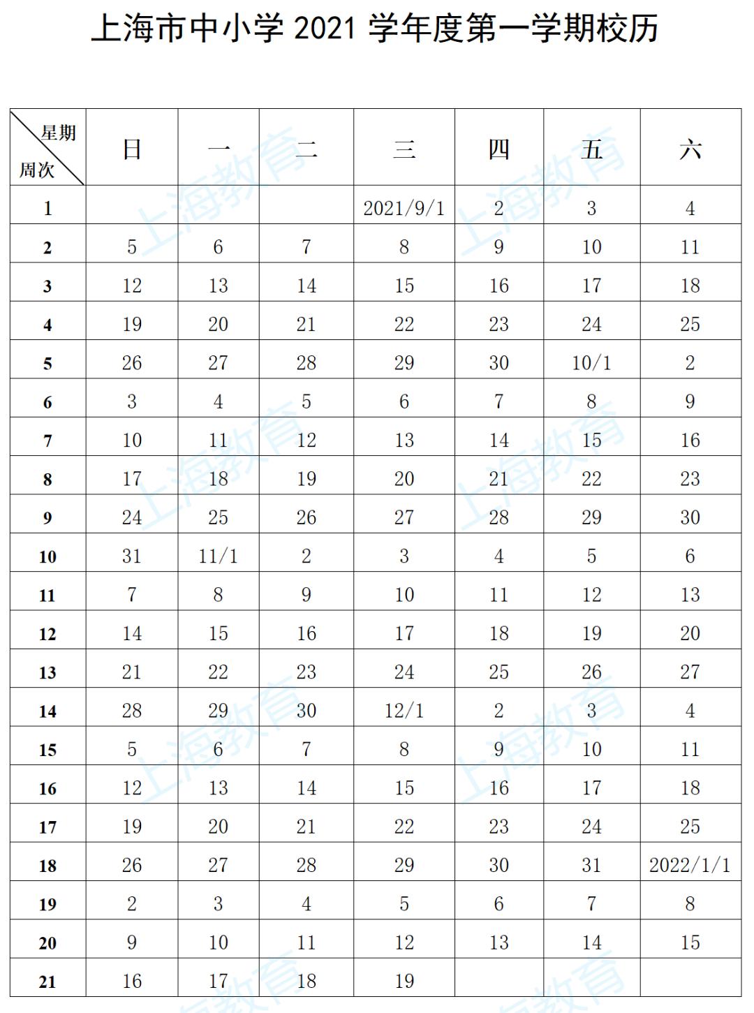 全学期共21周,2022年1月19日结束。寒假从2022年1月20日开始,2月16日结束。