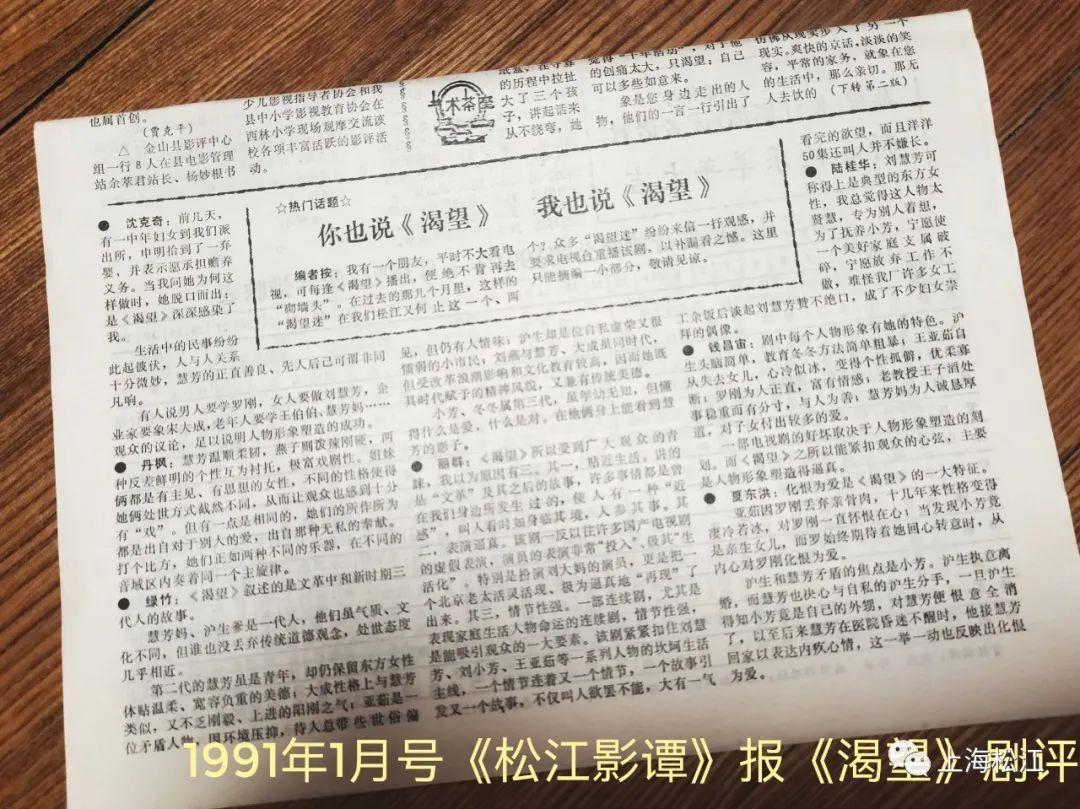 “看到你们文中说到《渴望》,我就想起了当年的场景,万人空巷。”周平笑说,“闵行和车墩交界的地方,闵行的一些农民在家就能搜到松江台,有的还过河来车墩亲戚家看剧。后来这部剧上海台播放时,我们松江的《渴望》剧评还被市里报纸大块版面刊登呢!因为松江台这剧播得早,松江人评论这剧的文章写得早、发表得早。”