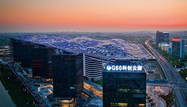 今天的“G60科创走廊”成了广袤长三角大地上的一个新地标。人们每次驱车经过沪杭廊道,往往一眼会被坐落于一侧的“G60科创云廊”所吸引。“G60科创云廊”,又名“拉斐尔云廊”,其外形有一股乘风破浪的巨帆之势,象征着世界级产业集群在此腾跃以及推动“中国制造”迈向“中国创造”的一个个壮举。长三角在国家新发展格局中占据重要地位。而松江认识到,高质量发展要解决提高对外开放的质量和发展的内外联动性,他们主动瞄准国际先进科创能力和产业体系,勇当科技和产业创新开路先锋。自“十三五”以来,他们致力于构建长三角G60科创走廊,从1.0版“源起松江”,到2.0版“联通嘉杭”,再到3.0版“九城共建”,继而到纳入顶层设计,推动基层实践上升为国家战略。G60科创走廊贯穿了长三角一市三省,覆盖松江、嘉兴、杭州、金华、苏州、湖州、宣城、芜湖、合肥九城,依托交通大通道,以市场化、法治化方式加强合作,有序推进九城联动建设,打造科技和制度创新双轮驱动、产业和城市一体化发展的先行先试走廊。其间,一批重大科创成果在松江新城相继涌现;一些头部企业和百亿级项目纷纷在松江新城落地,包括人工智能、集成电路、生物医药、智慧安防、新能源、新材料等在内的“6+X”战略性新兴产业。而松江牵头长三角G60科创走廊九城市以创新链、产业链为纽带,建立“1+7+N”产业联盟体系,目前已建立11个产业联盟,集聚头部企业1280家,签署86项区域一体化重大合作项目,共同打造了长三角高端制造业主阵地。有数据显示,九城市构建协调发展的效应日益凸显,其中,九城市GDP总量在全国的比重上升至1/15,地方财政以及市场主体数所占全国比例也获得明显上升,拥有高新技术企业数量占全国近1/10,科创板上市企业数量占全国1/5。