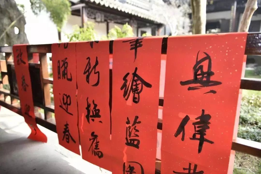 “年复一年气象雄,每多喜事见眉峰。红灯映照双联语,万紫千红舞春风。”松江地区向来重视与春联相关的活动,松江人对春联的材质也颇为讲究。明清两朝松江文人写春联专用“朱砂笺”,系“云笺中贵者”。即便到了当下,字体板制而僵化的印刷纸春联大行其道,松江地区还保持着手写春联的传统,书家妙手誊抄的春联中不乏书法佳品。散文家王迎高在《书法松江》中形容松江书派是“把墨研磨成液化的云絮、柳叶、燕尾和春联上的龙飞凤舞”。松江区书法协会每年会推出相应的“迎春纳福送春联”专题活动,这些源自松江现代文人的春联不仅联语考究,寓意吉祥,而且装帧精巧,颇具美感,不仅颇受喜爱书法艺术的中老年群体欢迎,也成为过年时不少年轻人追捧的“心头好物”。
