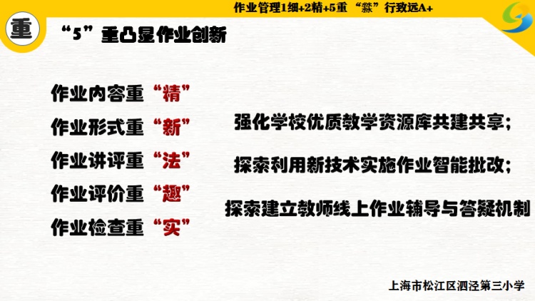 在新的学期,泗泾三小校长张英说,围绕“均衡,优质,特色”三大主题,学校将与时俱进,守正创新,特色发展,促提内涵。