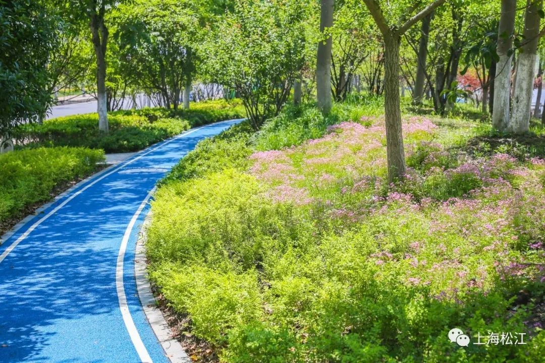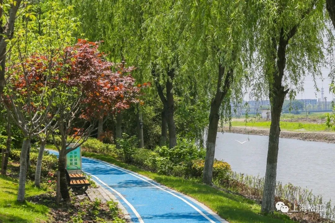 河水清清,倒映着整齐的护岸,护岸边,是绿植景观装饰的步道……位于经开区东升港路(思贤路-广富林路)滨河绿地已经成为了附近园区企业员工午休散步的首选。2021年经开区完成了东升港慢行绿道的创建,紧邻东升港河的绿地内打造了一条可赏景、健身的亲水绿道,全长1850米,其中铺设了塑胶路面的健身步道长1670米、宽1.5米。