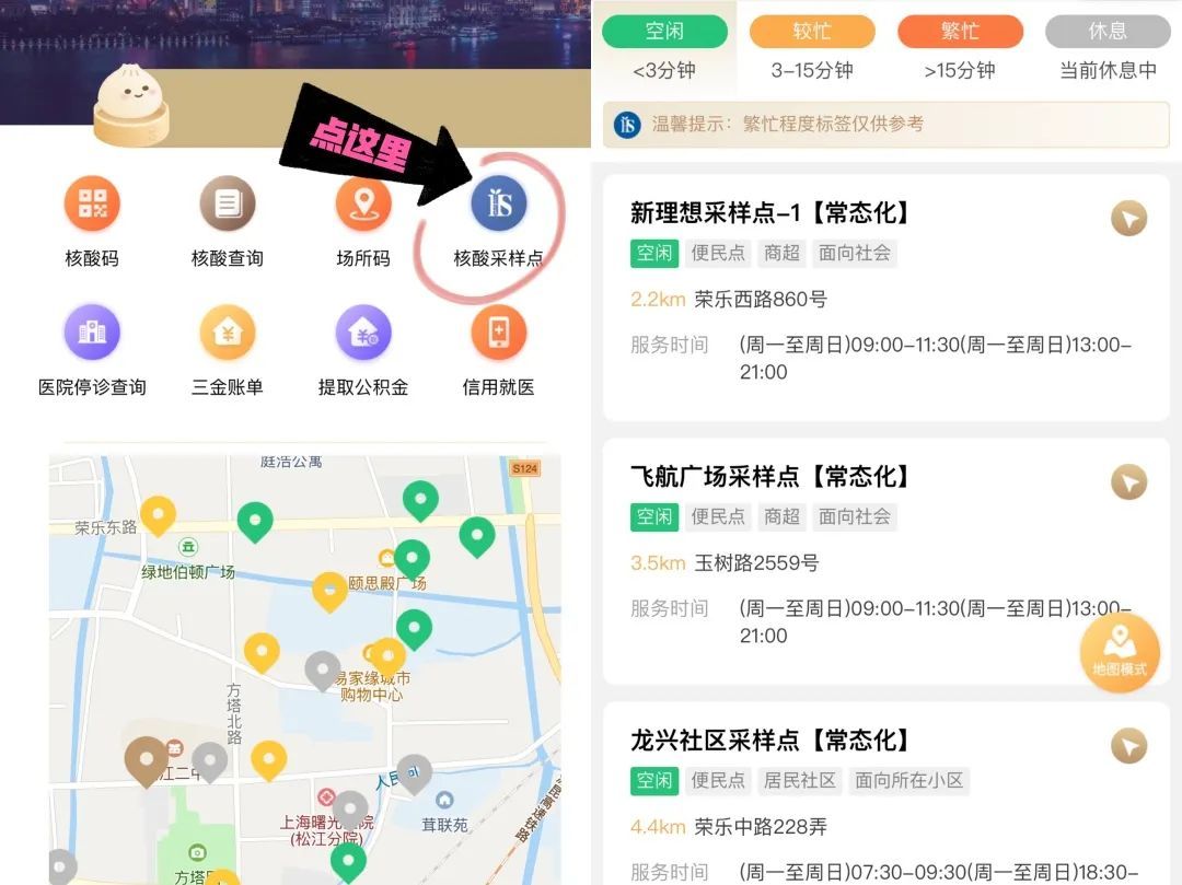 市民可登录“随申办”app或小程序,在首页“核酸采样点”页面中,查询到所在区域周边采样点的具体地址、服务时间、忙闲情况,页面上还提供了地图导航服务,大家可根据需求,跟随导航就近接受核酸采样服务。值得注意的是,根据上海市疫情防控工作领导小组办公室最新发布信息,全市常态化核酸检测点的检测服务免费至6月30日。