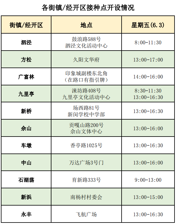 注:接种点当日开放情况以属地街镇告知为准。如遇核酸筛查,视情况暂停接种点开放。