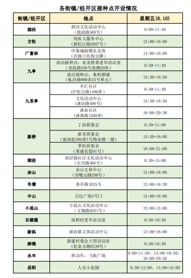 注:接种点当日开放情况以属地街镇告知为准。如遇核酸筛查,视情况暂停接种点开放。