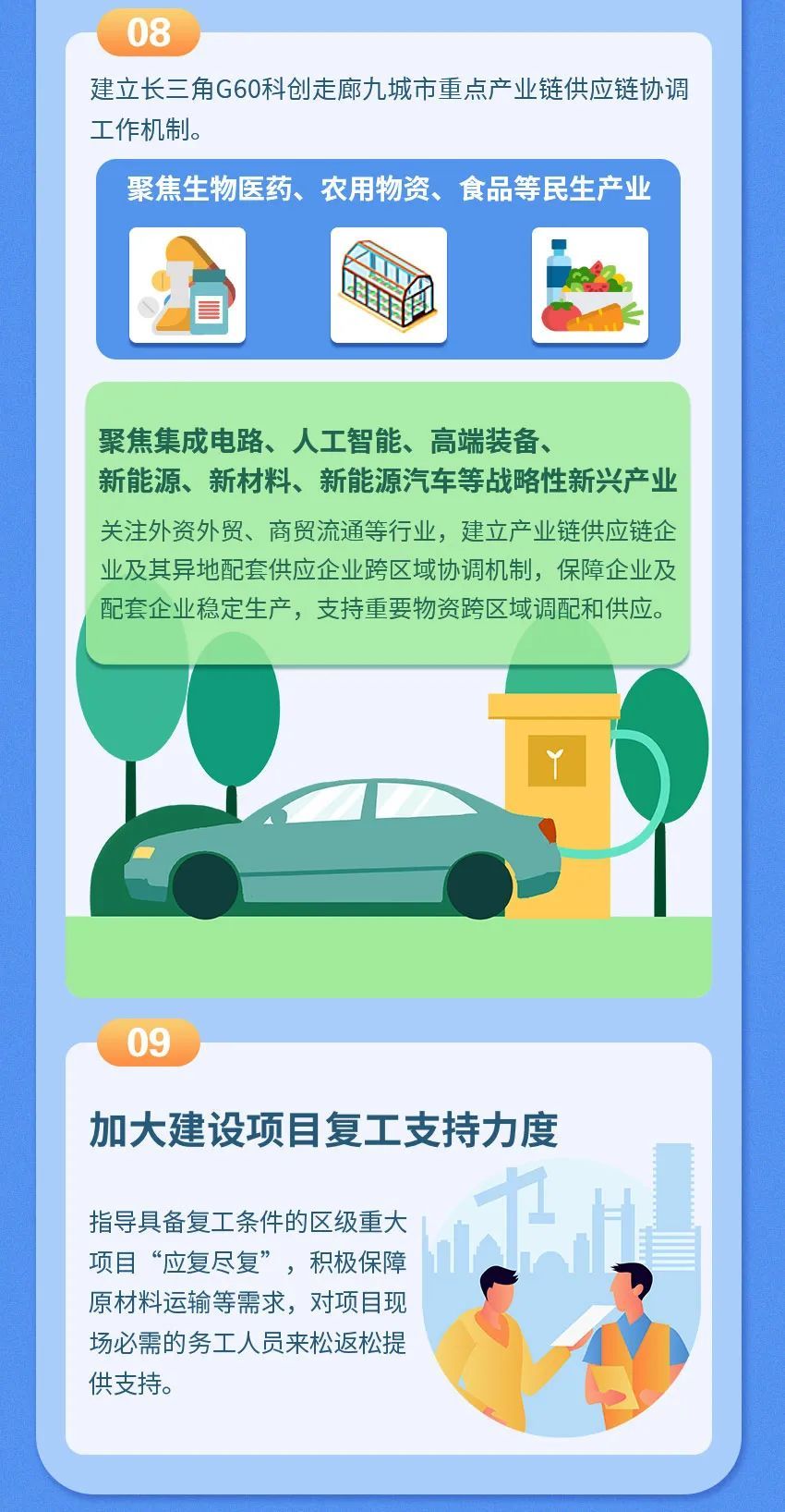 聚焦生物医药、农用物资、食品等民生产业以及集成电路、人工智能、高端装备、新能源、新材料、新能源汽车等战略性新兴产业,同时关注外资外贸、商贸流通等行业,松江建立长三角g60科创走廊九城市重点产业链供应链协调工作机制,保障企业及配套企业稳定生产,支持重要物资跨区域调配和供应。