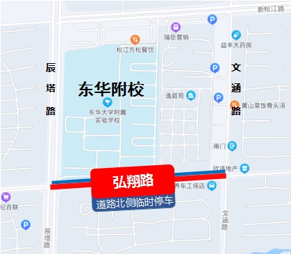 同时,为方便家长接送考生,松江交警在考点周边设置了临时停车区域(下图蓝色表示),请家长根据现场指示牌标示,听从现场民警指挥,有序停放车辆。
