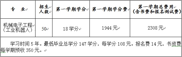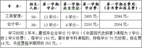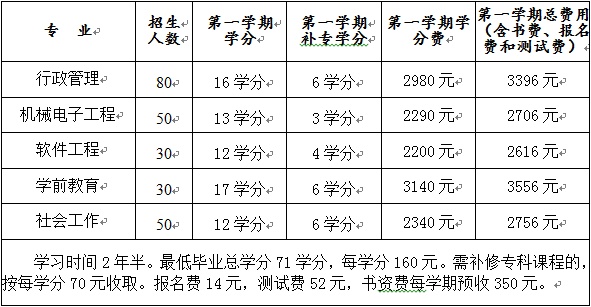 本科:报名费14元;测试费:52元;书资费:350元;第一学期的学分费。
