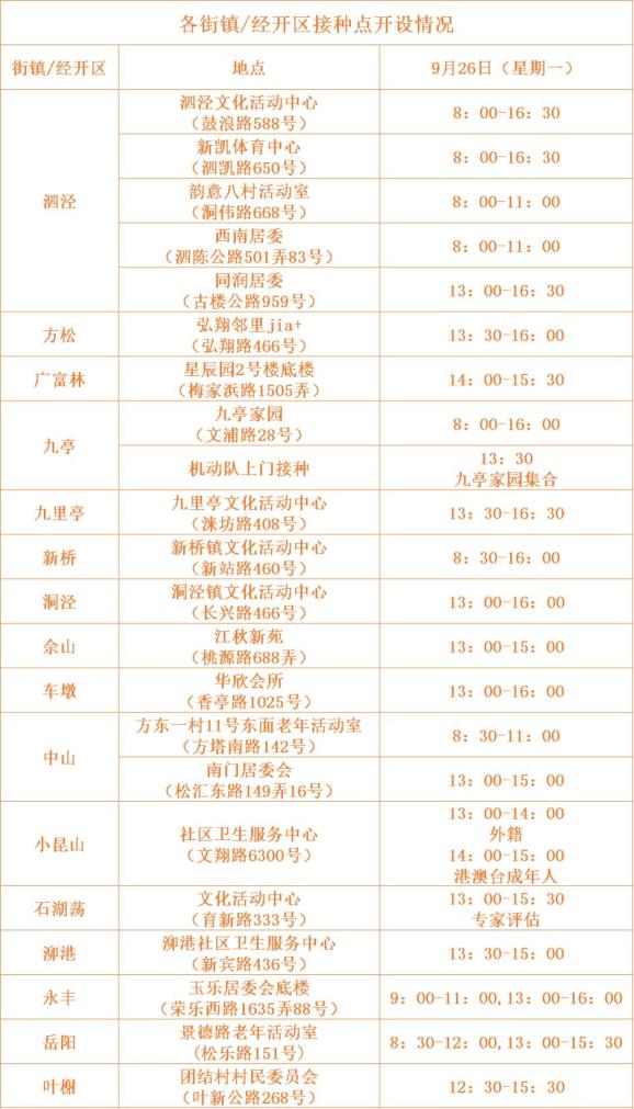 注:接种点当日开放情况以属地街镇告知为准。如遇核酸筛查,视情况暂停接种点开放。