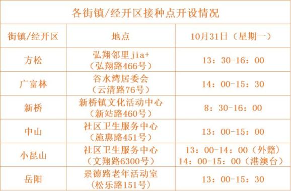 松江区新冠疫苗接种安排(10月31日)