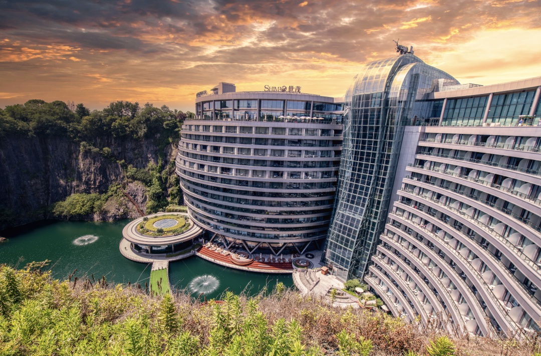 在佘山国家级旅游度假区,有这样一个与众不同的“深坑”以及依附深坑崖壁而建的奇妙建筑。在网上,这座建筑被称作世界上最“坑”的酒店,是游览佘山时不可错过的“打卡圣地”;而在工程师眼中,这座建筑则是人类建筑史上的一个奇迹,是无数同仁用智慧与汗水铸就而成的工艺品——它就是上海佘山世茂深坑酒店,全球首个建造在废石坑内的自然生态酒店。