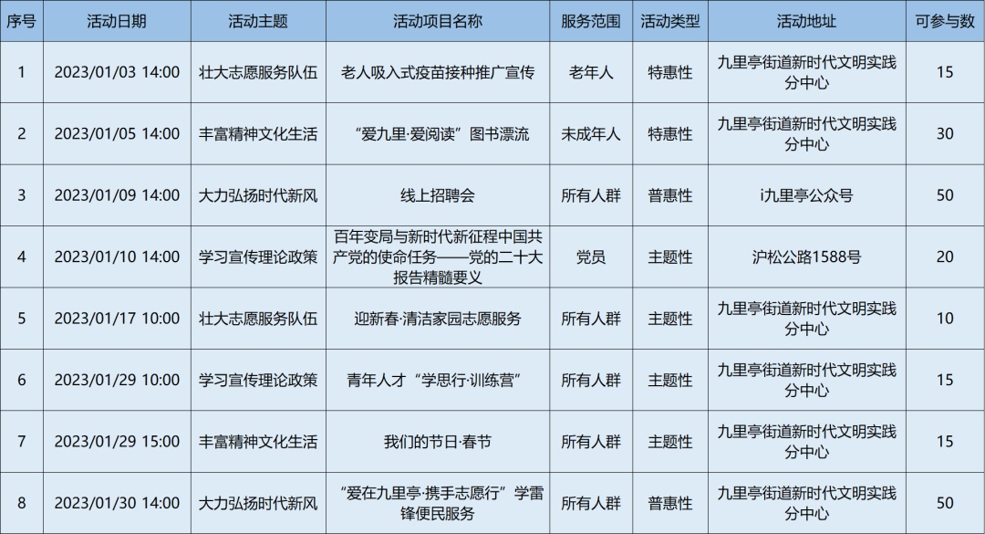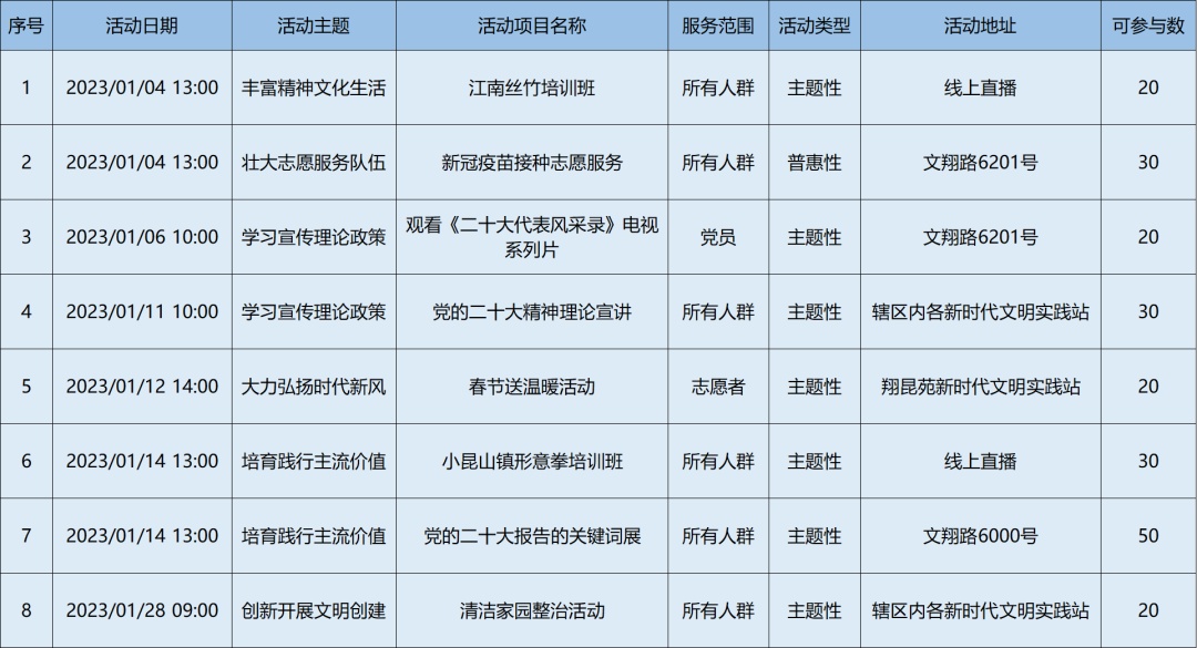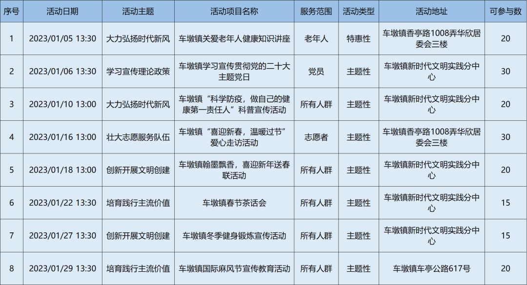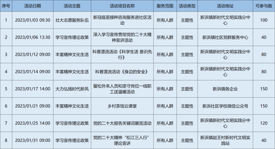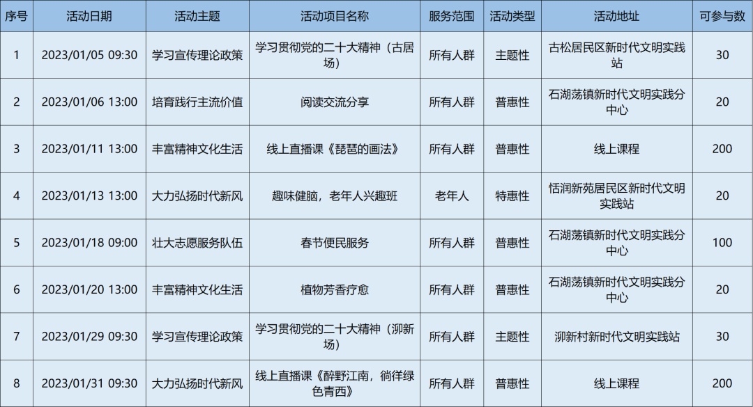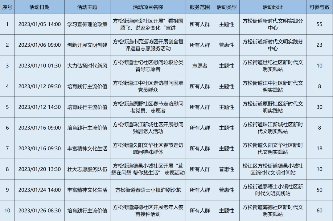2023年1月松江区各级新时代文明实践阵地活动清单,请看↓