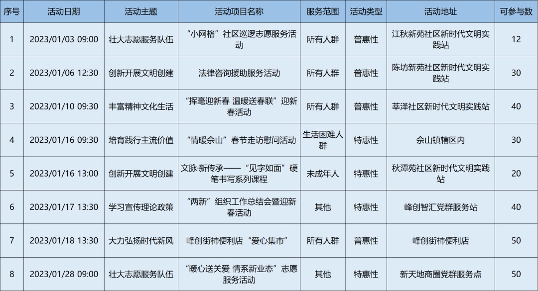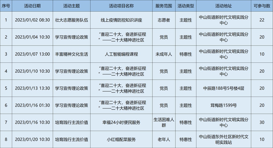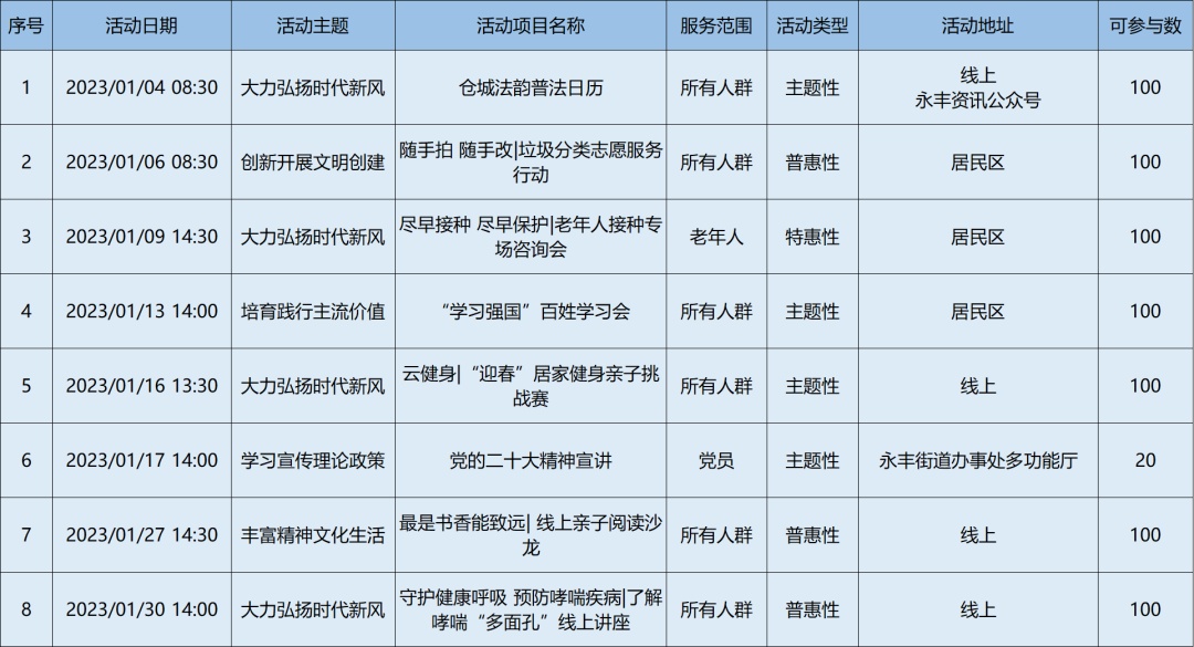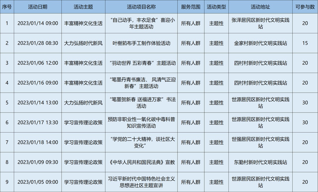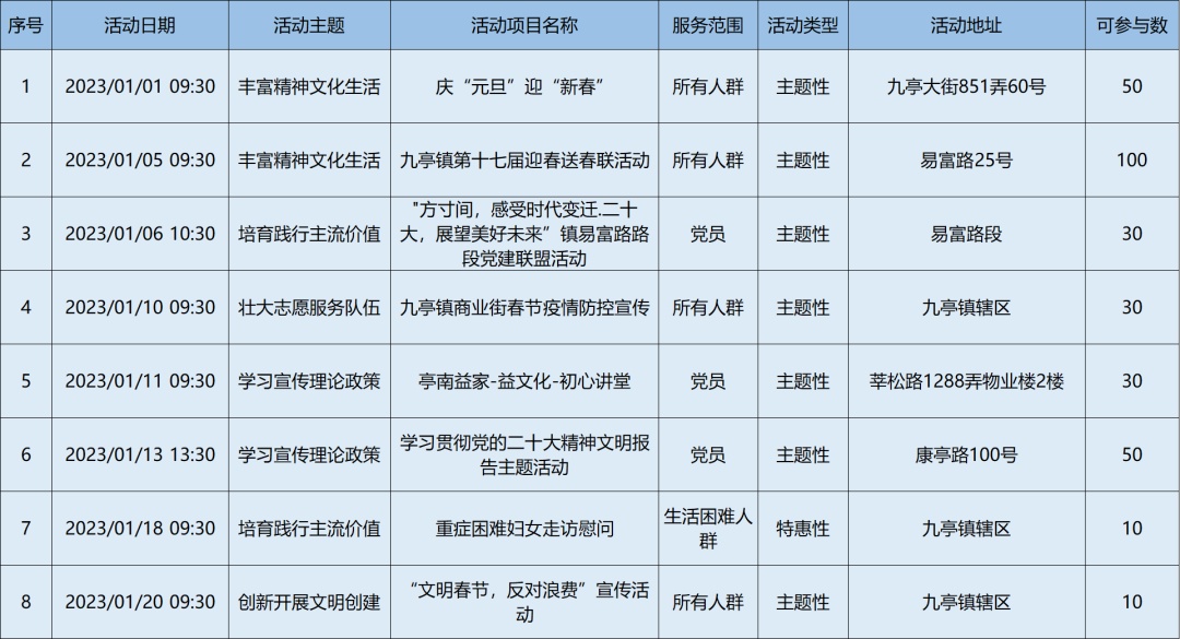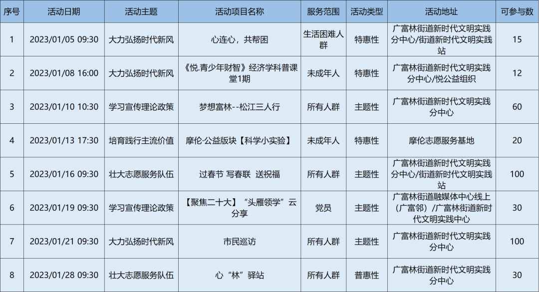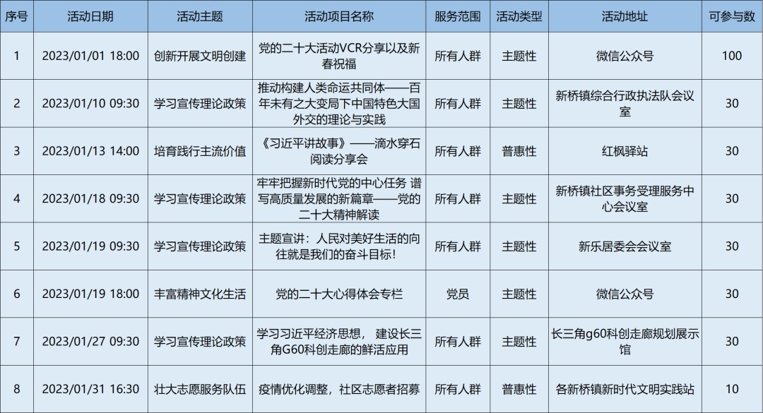 2023年1月松江区各级新时代文明实践阵地活动清单,请看↓