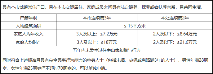 3、家庭人均住房建筑面积低于15平方米(含15平方米)。