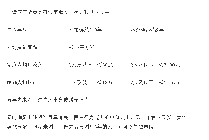 一、共有产权保障住房申请条件同时符合下列标准的本市城镇户籍居民家庭,可以申请购买共有产权保障住房: