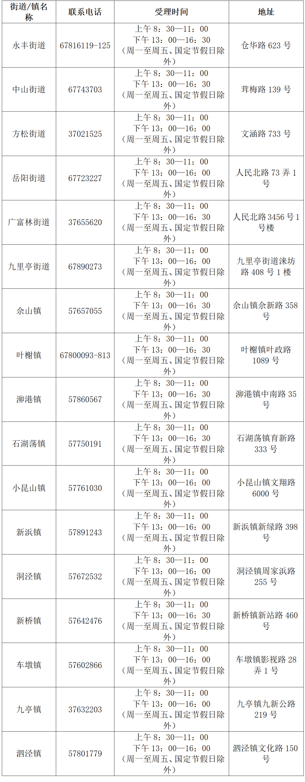 (双休日及法定节假日受理工作由各街镇社区事务受理服务中心根据实际情况自行安排。)