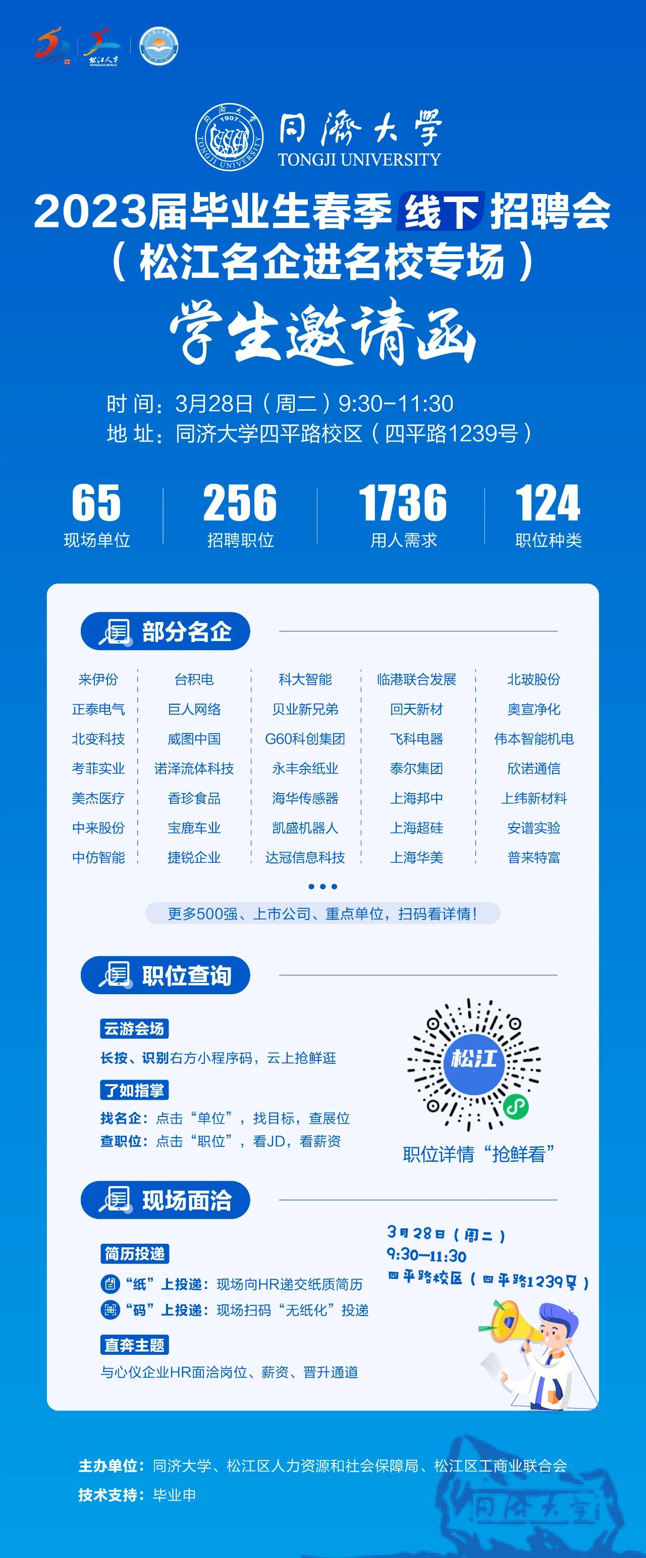同学们!3月28日,松江名企进名校:同济大学专场!四平路校区不见不散
