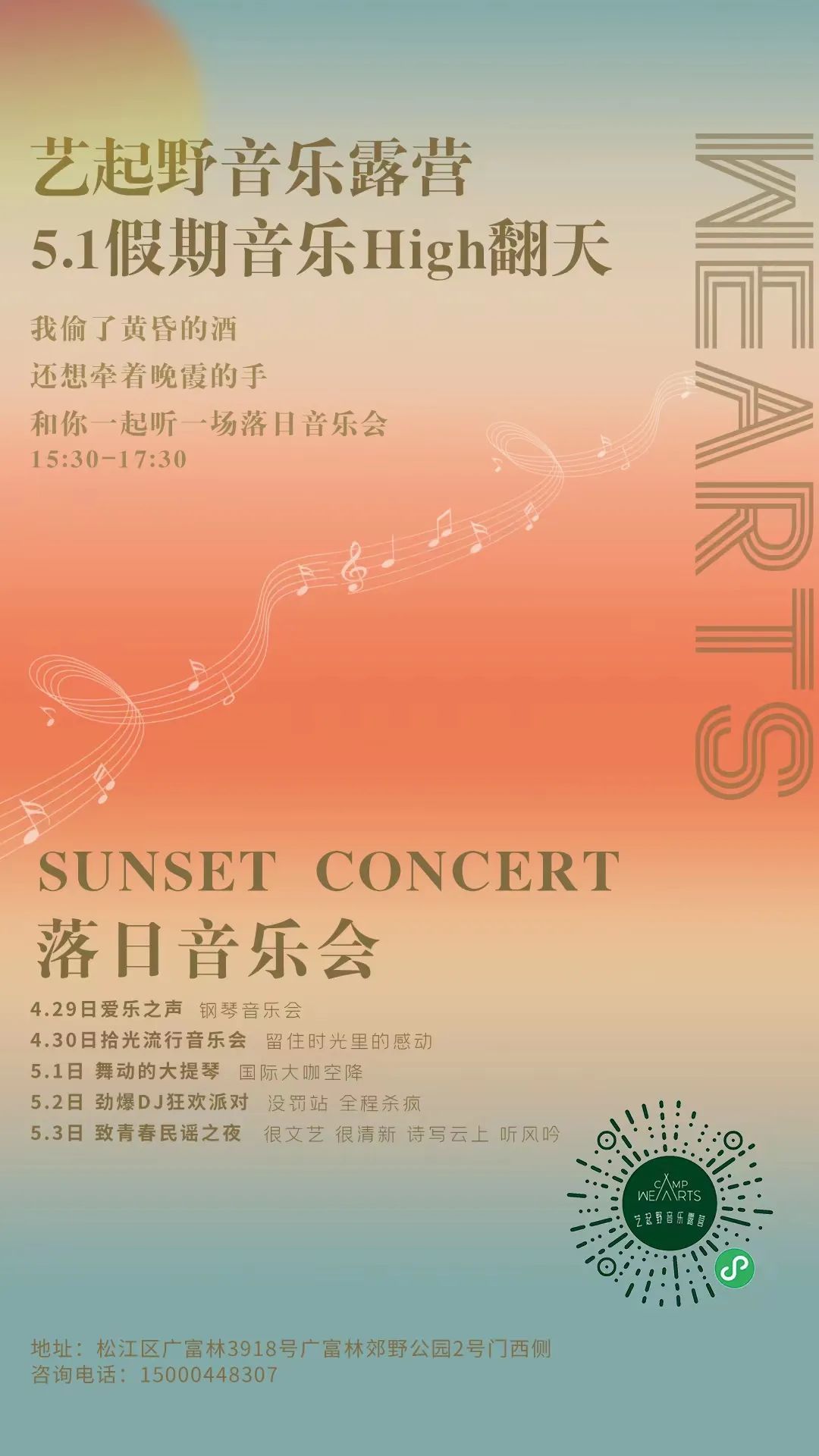 “五一”假期,艺起野音乐露营地将推出为期五天的落日音乐会,市民游客可现场聆听来自克罗地亚大提琴家、柒升七降乐队等现场演出。此外,还有飞盘、弓放箭、非洲鼓、羽毛球、乒乓球、儿童乐园、足球、投篮机等运动项目,以及高规格的露营烧烤。