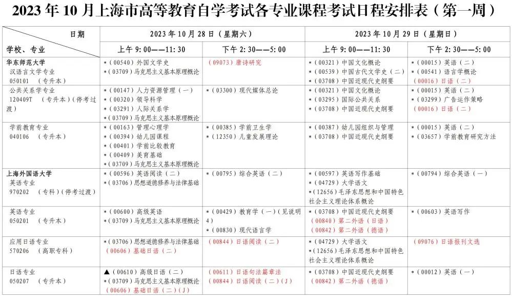 10月底开考!2023年下半年上海高等教育自学考试安排出炉