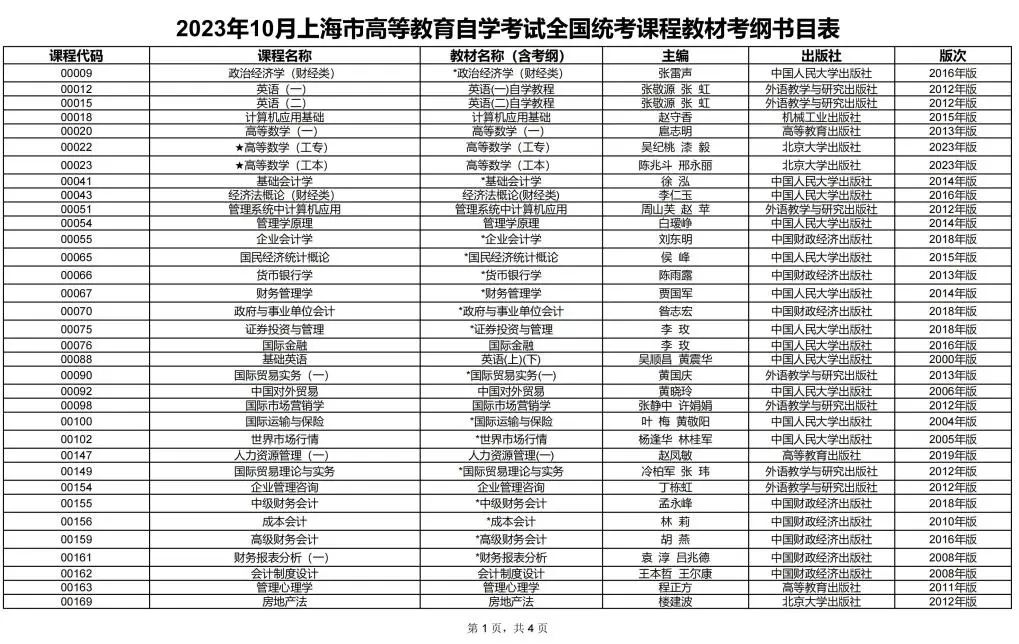 市教育考试院介绍,2023年下半年我市高等教育自学考试将在10月28日、10月29日、11月4日举行,共三天。《2023年10月上海市高等教育自学考试各专业课程考试日程安排表》及《2023年10月上海市高等教育自学考试教材考纲书目表》已公布,详见↓