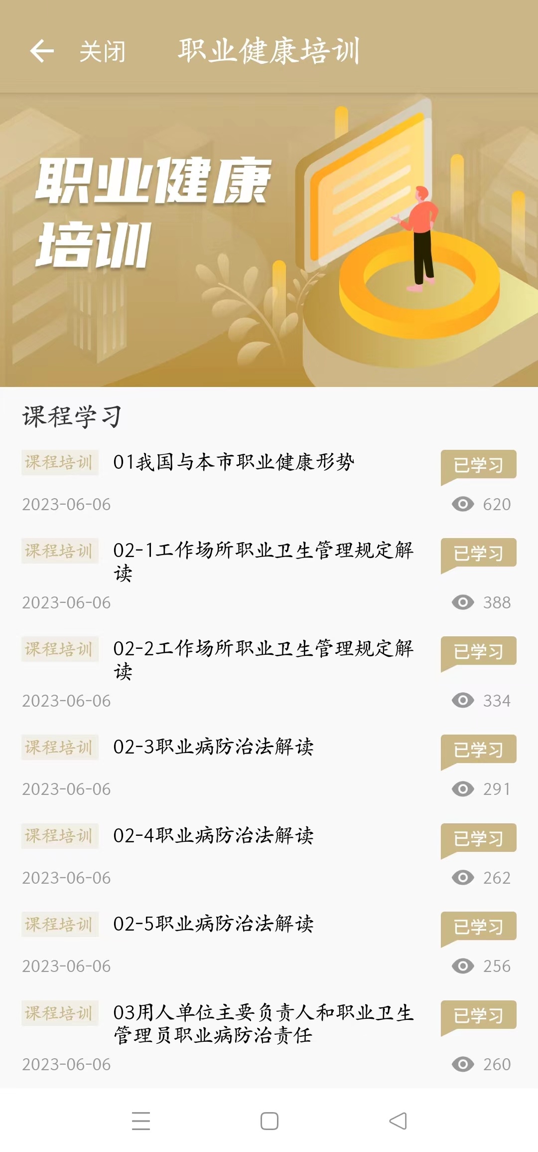 平台教学资源涵盖面广、严谨度高,提供的相关知识学习视频,均由资深专家学者及监督员精心编制。课程内容涵盖全国和上海市的职业健康形势、职业病防治法解读、工作场所职业卫生管理规定解读、所属行业职业病危害因素及其防护措施等。