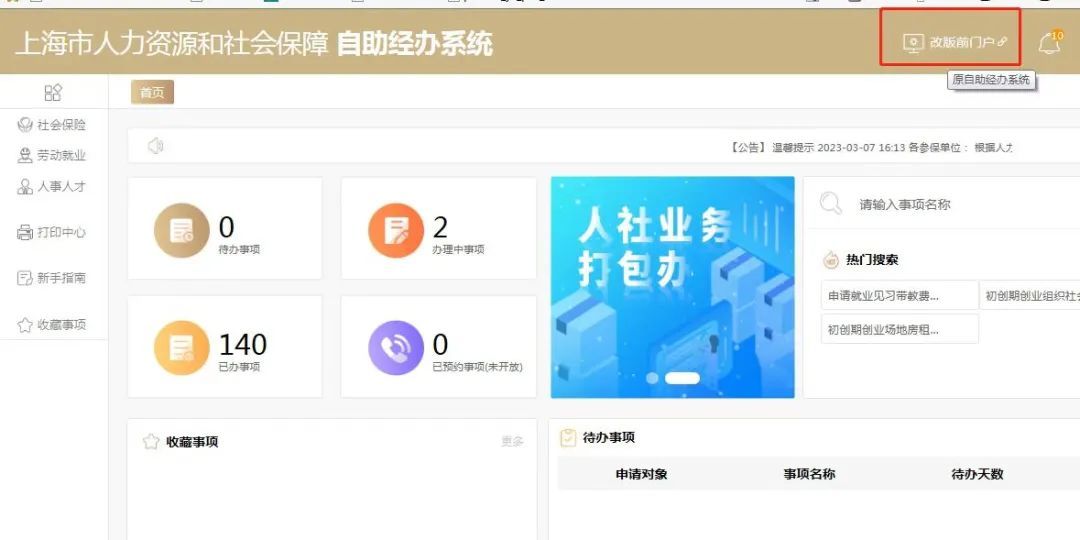 可以通过上海市人力资源和社会保障局自助经办系统(网址:https://zzjb.rsj.sh.gov.cn/zzjbdl/jsp/login.html)进入“改版前门户”;也可以进入上海“一网通办”门户网站搜索相关人才业务,通过法人登录(网址:https://zwdtuser.sh.gov.cn:7443/tsoauth/login.jsp)