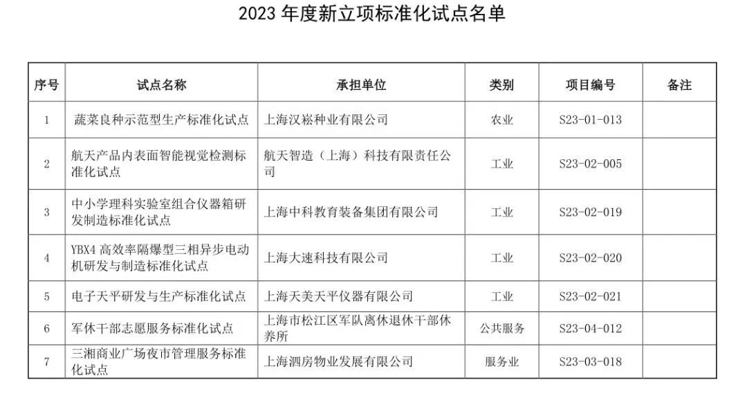 上海市市场监管局日前公布2023年度上海市标准化试点项目名单。松江区7个项目榜上有名,其中农业领域1项、工业领域4项、服务业领域1项、公共服务领域1项。