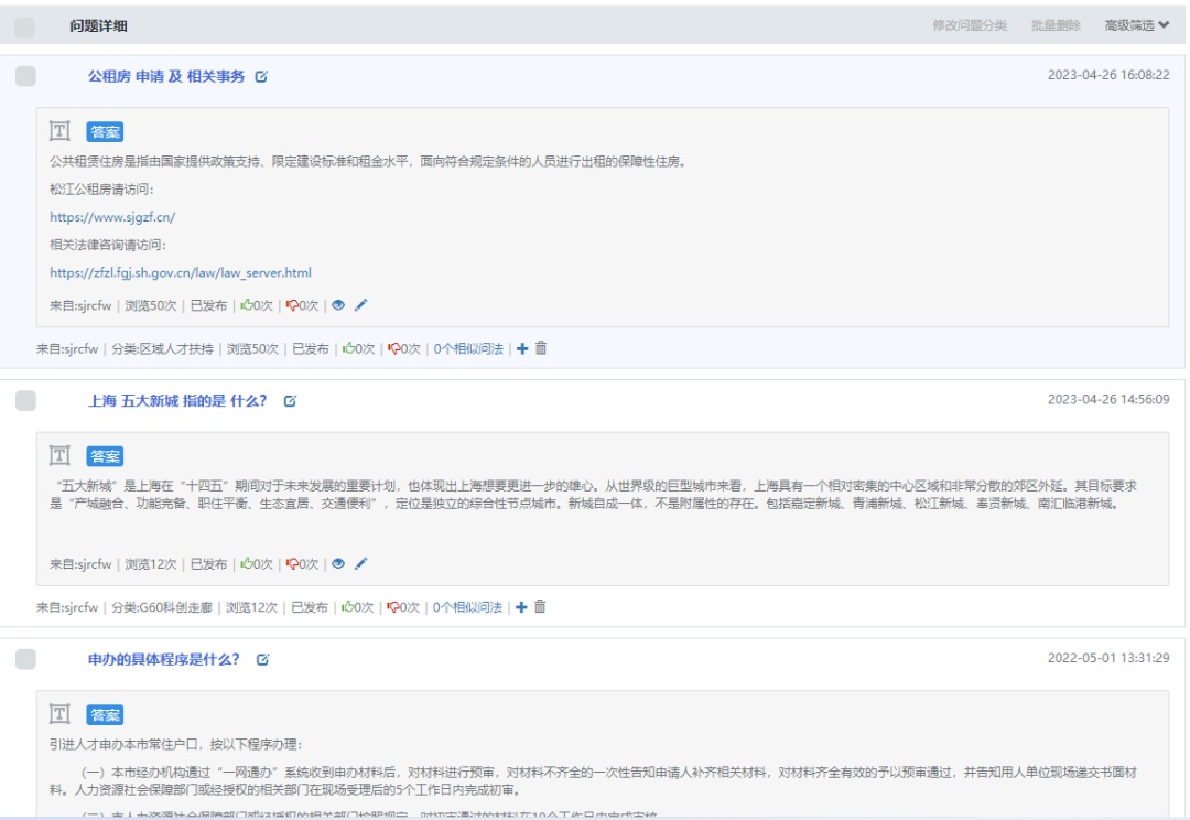 自2017年开始,通过公共租赁房归集一批、非居住房屋转化一批、开发商建设运营一批等“三个一批”的形式,持续归集品质高、配套好、量大价优、拎包即入住的人才公寓,截至今年已归集人才公寓1.7万套,覆盖17个街镇(经开区)和主要园区。推出了“长三角G60科创走廊(上海松江)人才公寓智慧管理平台”,实现线上查询人才公寓分布、看房、选房、签约、补贴申请全程网办。