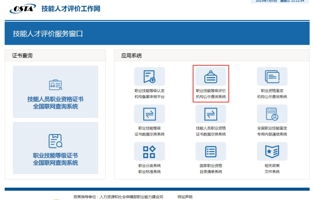 (1)市民进入国家人力资源和社会保障部所属的技能人才评价工作网www.osta.org.cn,点击“职业技能等级评价机构公示查询系统”。