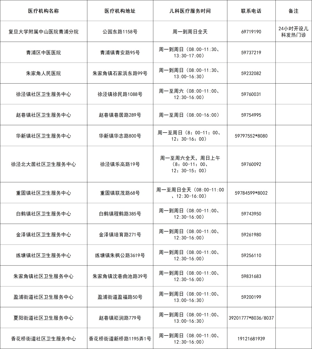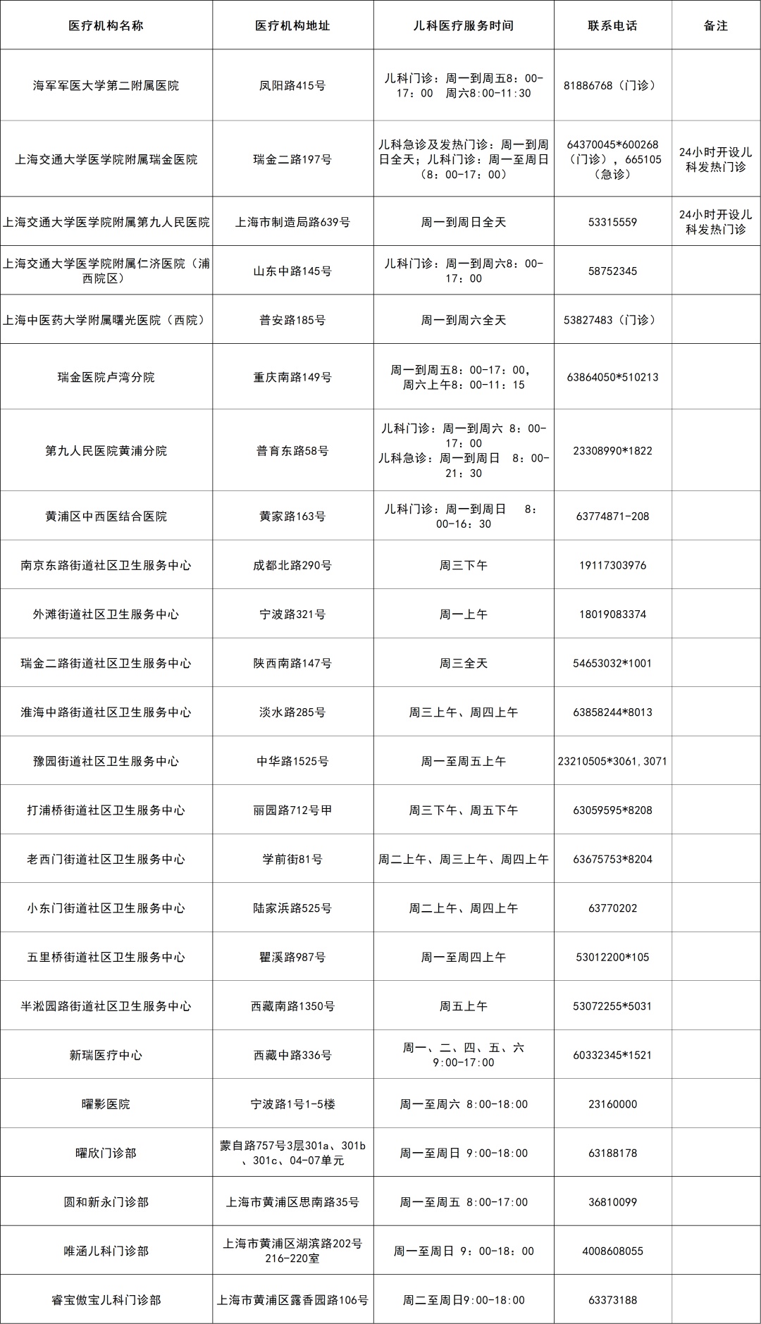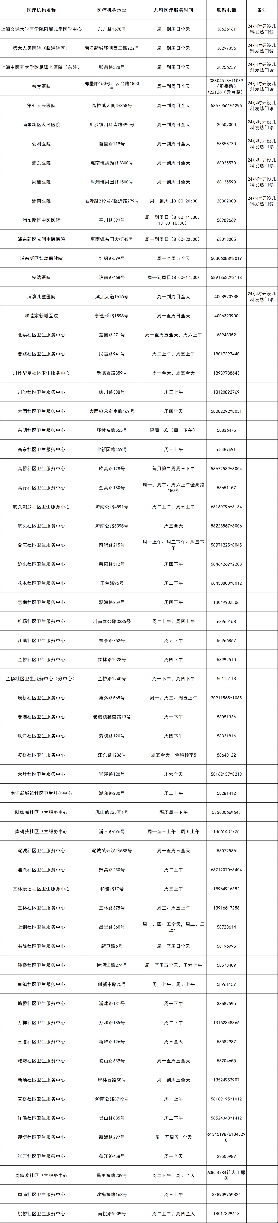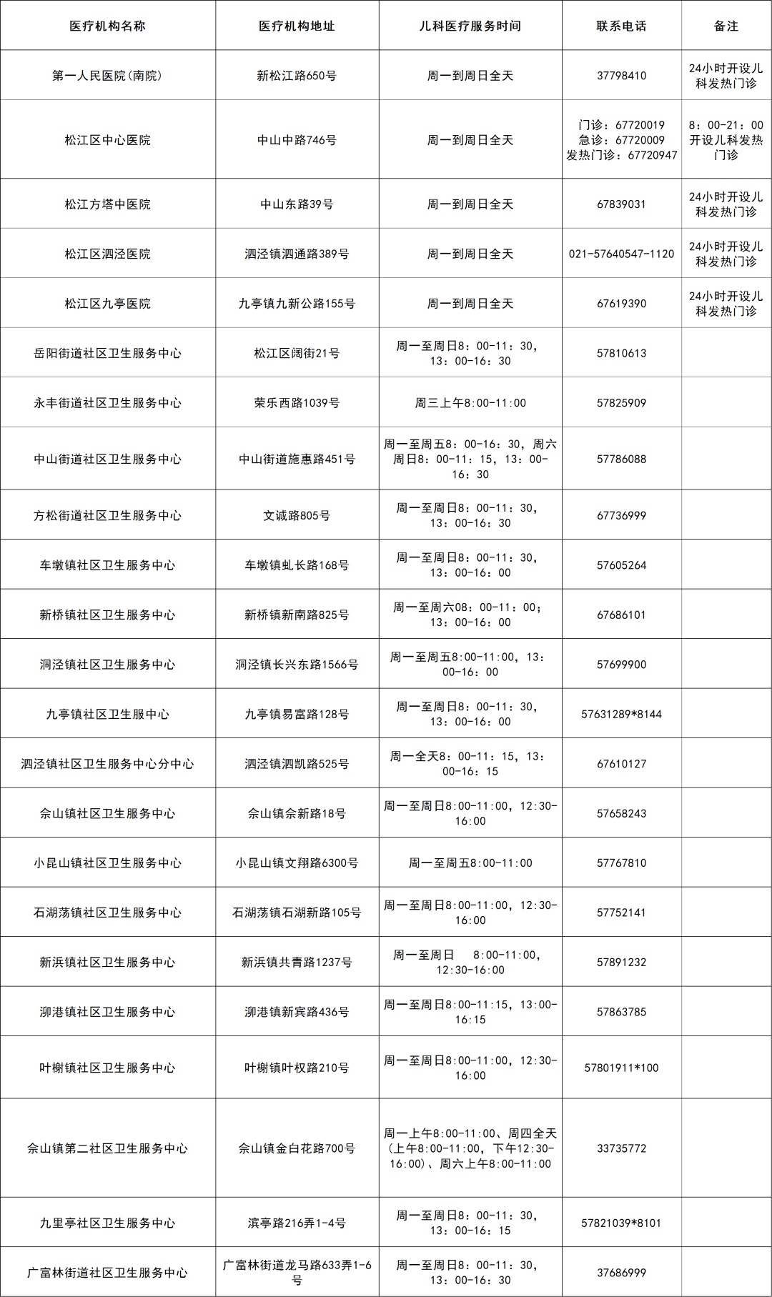 我市提供儿科医疗服务的医疗机构信息,松江有这些