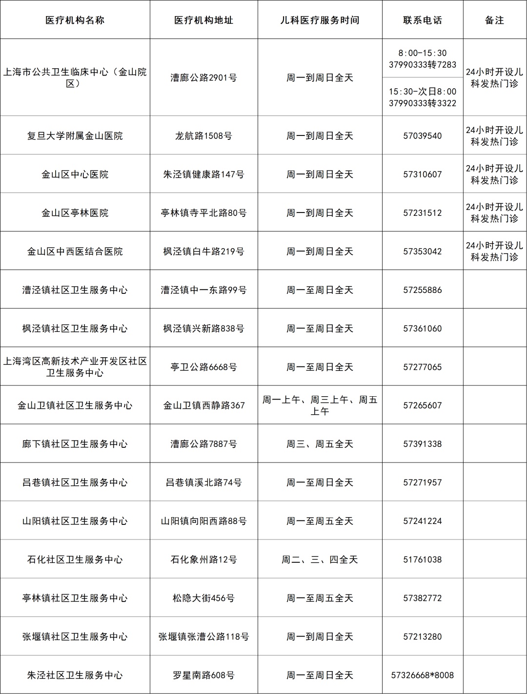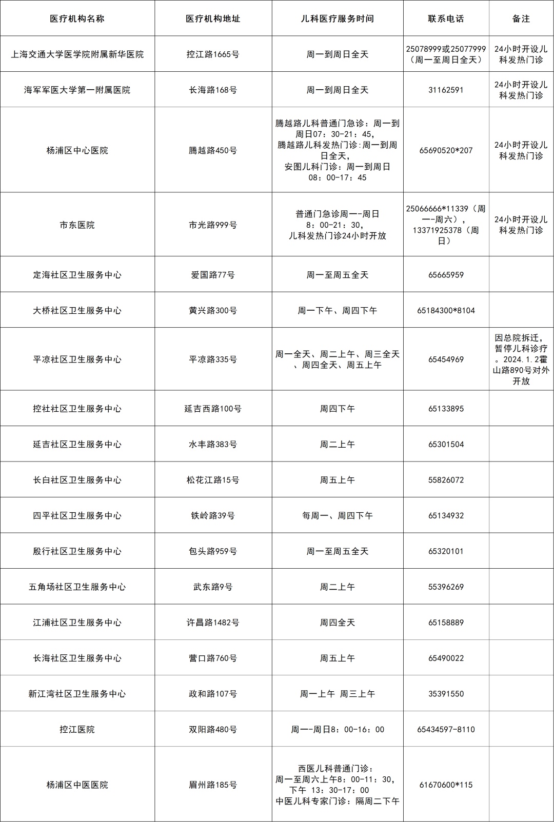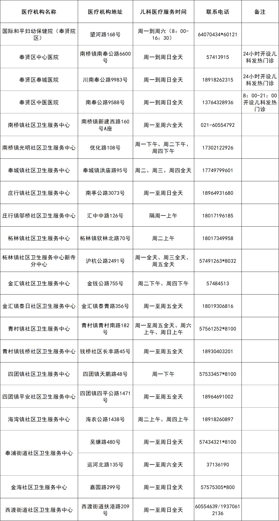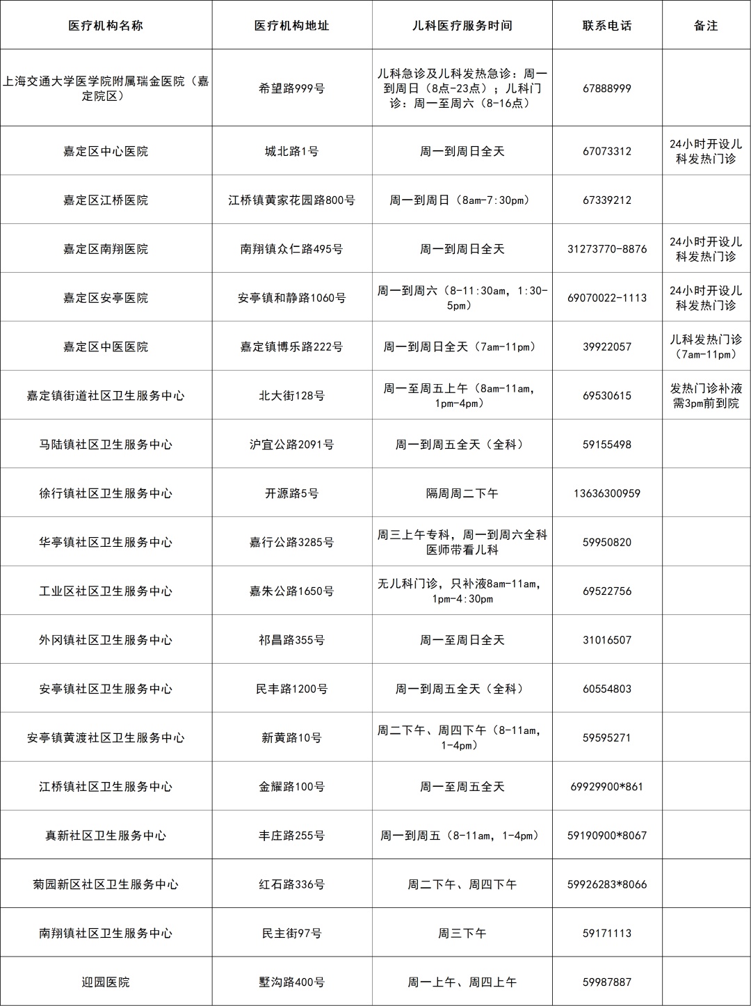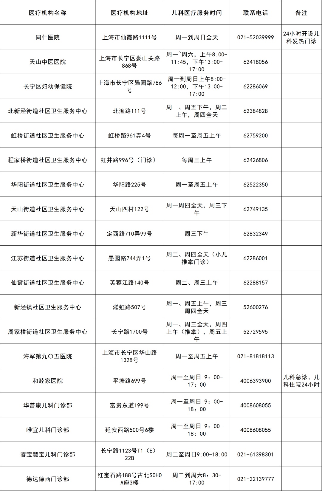 我市提供儿科医疗服务的医疗机构信息,松江有这些