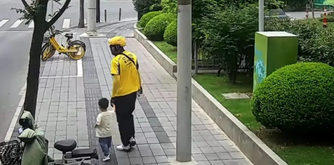 两岁萌娃路边大哭,外卖小哥暖心相助。