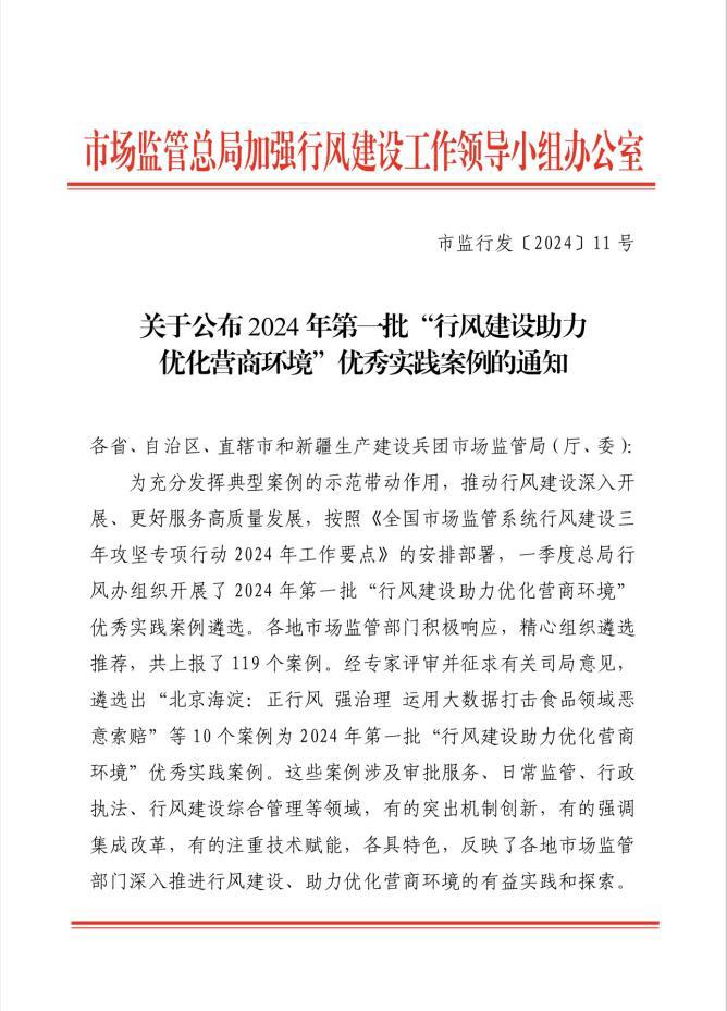 日前,国家市场监督管理总局公布了2024年第一批“行风建设助力优化营商环境”优秀实践案例名单。上海市松江区市场监督管理局报送的《上海松江:“云监码”赋能“双随机”监管解决扰企问题》案例成功入选,这也是上海市唯一入选的案例。