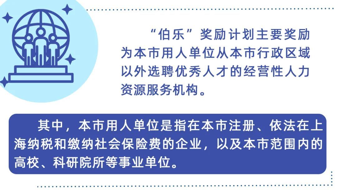为本市用人单位选聘世界知名或国内顶尖高层次人才,每人次一次性奖励人力资源服务机构50万元人民币。