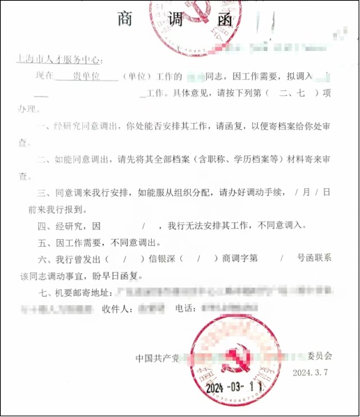 3、调档函(外省市上级单位出具并盖党委章或总支章)(附图1)