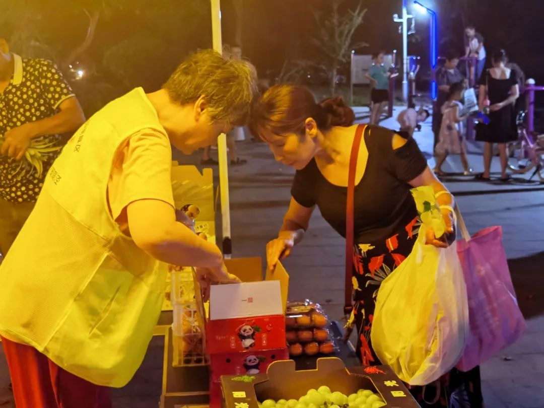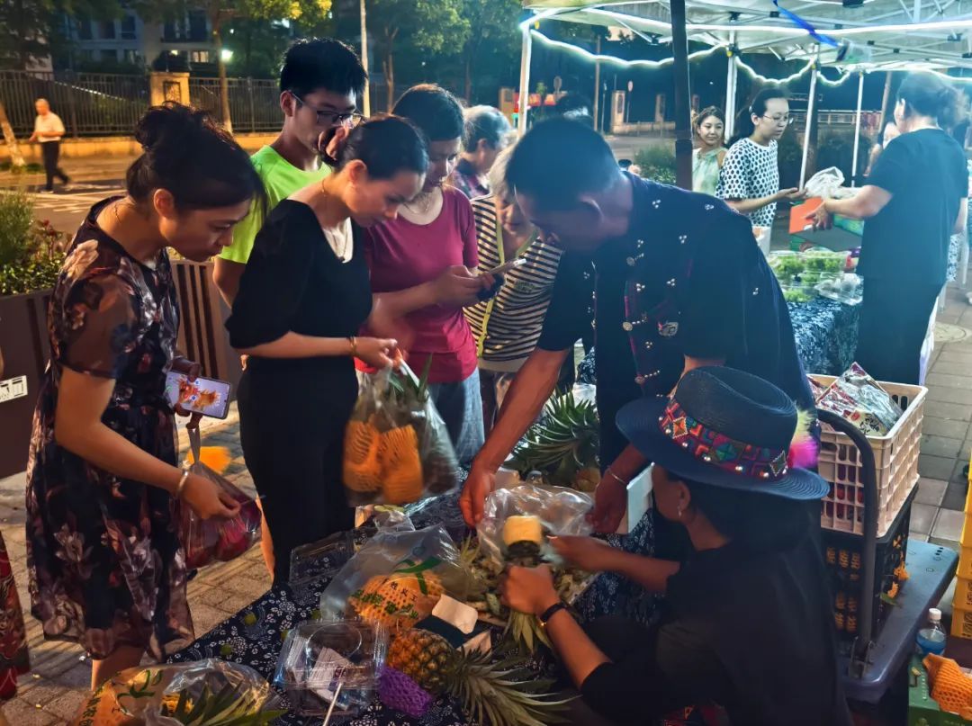 玉米、石斛、红茶、小菠萝、火龙果、小南瓜、鲜花饼……8月3日晚上,一场摆满了云南西双版纳特产的助农市集在中山街道马利来广场中庭火热开市。身着民族服饰的版纳青年守在摊位前热情推介物美价廉的家乡好物。“西双版纳独特的气候条件和丰富的生物多样性造就了地产水果口感甘甜、香味悠远的独特风味。由专车直供的水果不仅新鲜、味美,而且价格也很实惠。”西双版纳州人民政府驻上海联络处工作人员韩廷巍热情介绍道。