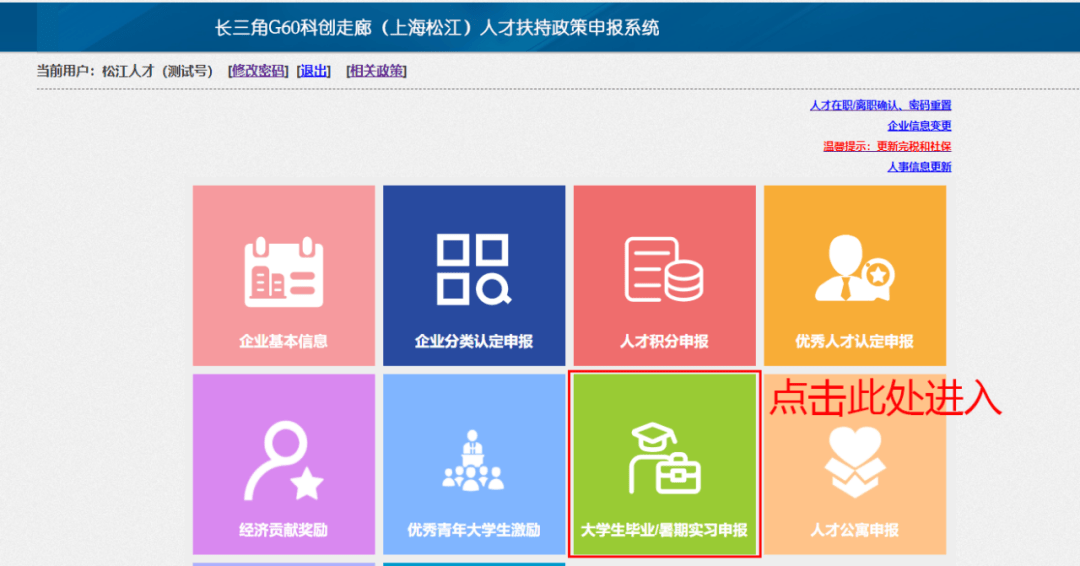 1、通过企业账号登录长三角G60科创走廊(上海松江)人才扶持政策申报系统