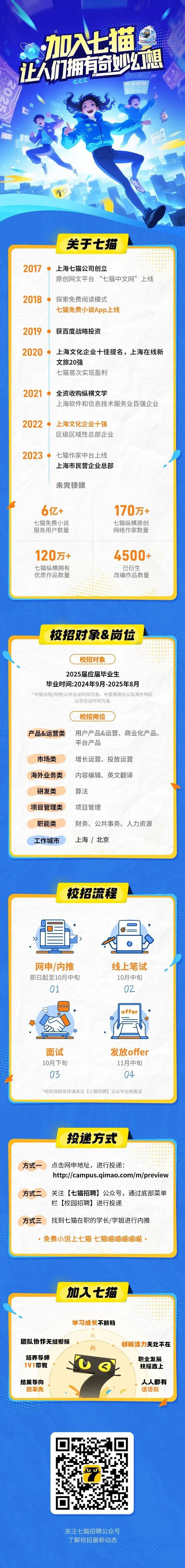 本区重点扶持企业七猫文化传媒2025届校园招聘正式启动!