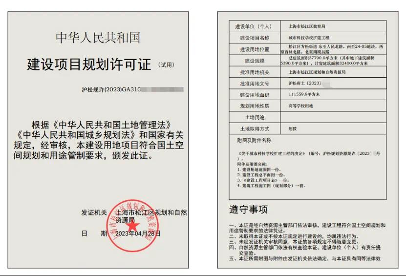 日前,记者从松江区规划资源局获悉,作为松江区重大工程项目的城市科技学校扩建工程从前期立项到成功获得由松江区规划资源局核发的《建设项目规划许可证》,前后不到半个月时间。