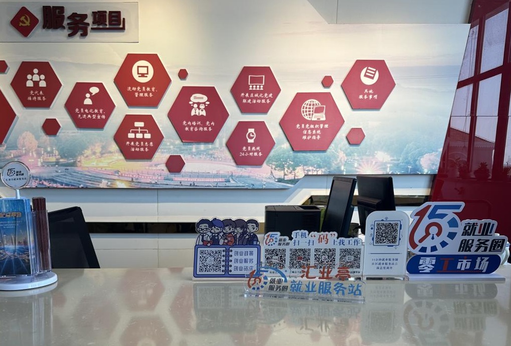 走进“汇业亭”就业服务站,墙面上张贴着醒目的“15分钟就业服务圈”宣传栏,这里定期更新就业创业活动信息以及岗位信息。站点内设置接待咨询、信息查询、指导服务、综合活动等四大区域,覆盖就业需求排摸、就业岗位募集、就业供需匹配、就业能力提升、就业援助帮扶、创业指导服务六大服务功能,同时设置零工柜台等,不断丰富服务内容。